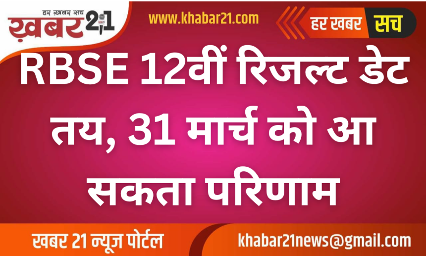 Khabar21 > Blog > राजस्थान > RBSE 12वीं रिजल्ट डेट तय, 31 मार्च को आ सकता परिणाम – Rajasthan News