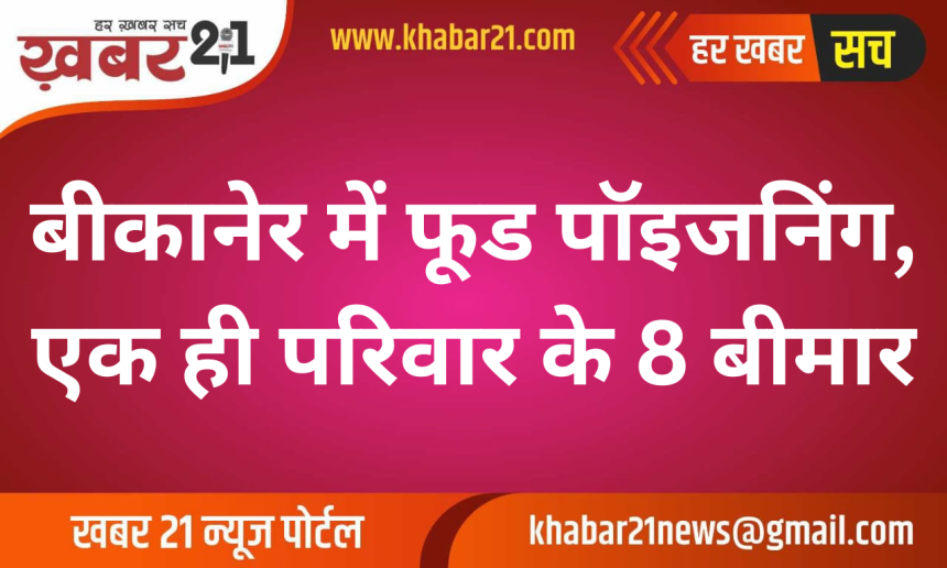 बीकानेर: नापासर थाना क्षेत्र के मुंडसर गांव में एक ही परिवार के आठ लोगों के अचानक बीमार होने से हड़कंप मच गया। सोमवार रात भोजन करने के बाद सभी की तबीयत बिगड़ गई, जिसके बाद उन्हें बीकानेर के पीबीएम अस्पताल में भर्ती कराया गया।