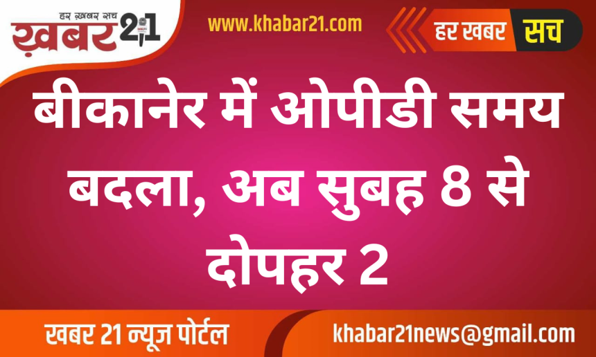 नए आदेश के अनुसार 1 अप्रैल 2026 से 30 सितंबर 2026 तक पीबीएम हॉस्पिटल, एसएसबी हॉस्पिटल, राजकीय जिला अस्पताल बीकानेर और गंगाशहर सैटेलाइट हॉस्पिटल में ओपीडी का समय सुबह 8 बजे से दोपहर 2 बजे तक रहेगा।