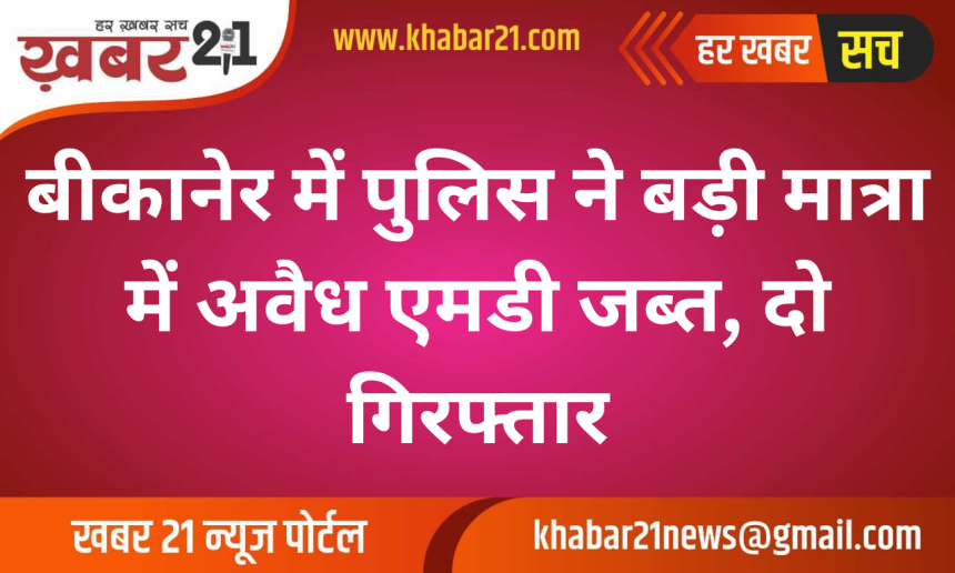 बीकानेर के मुक्ताप्रसाद थाना क्षेत्र में अवैध मादक पदार्थों के खिलाफ पुलिस ने बड़ी कार्रवाई की। मुक्ताप्रसाद पुलिस और एएनटीएफ टीम ने अंसल कॉलोनी के पास लगभग 100 ग्राम अवैध एमडी जब्त किया।