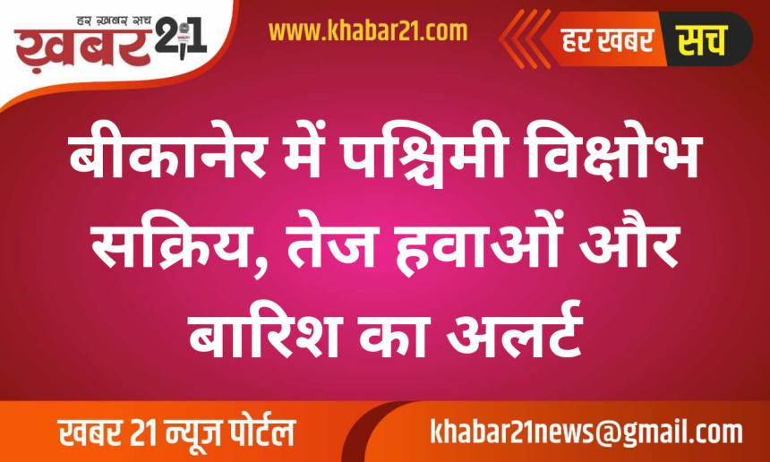बीकानेर में बीती रात से ठंडी हवाओं के कारण सर्दी का अहसास हुआ। मौसम विभाग के अनुसार शहर में 10 बजे के बाद से तेज दक्षिण-पश्चिमी हवाएं चल रही हैं। पश्चिमी विक्षोभ सक्रिय होने के कारण आज हल्की बारिश या तेज हवाओं की संभावना बनी हुई है।