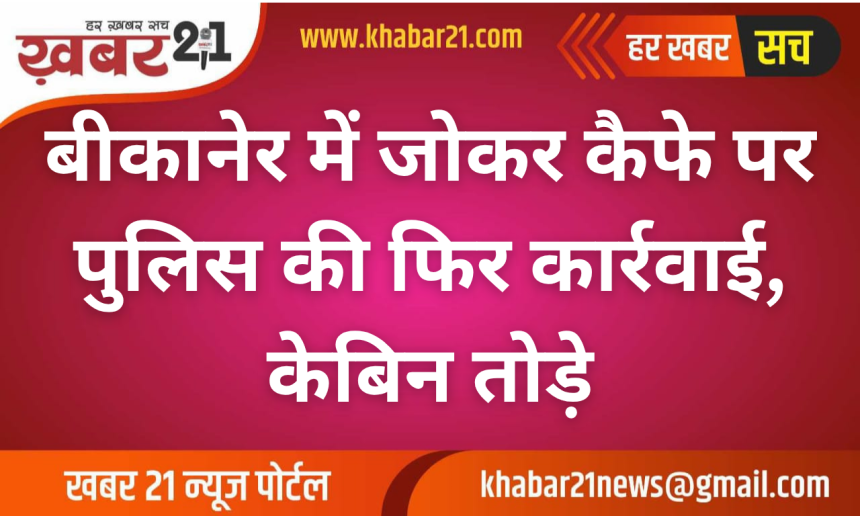 Khabar21 > Blog > बीकानेर > बीकानेर में जोकर कैफे पर पुलिस की फिर कार्रवाई, केबिन तोड़े