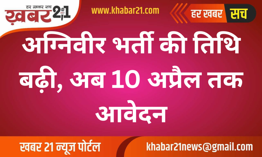 महिला उम्मीदवारों के लिए अग्निवीर सामान्य ड्यूटी (महिला सेना पुलिस) में भी आवेदन का अवसर उपलब्ध है। भर्ती वर्ष 2027 के लिए ऑनलाइन पंजीकरण Join Indian Army वेबसाइट पर 10 अप्रैल 2026 तक किया जा सकता है।