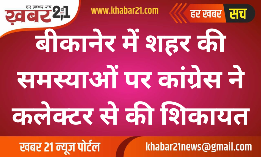 बीकानेर में शहर कांग्रेस कमेटी के अध्यक्ष मदन गोपाल मेघवाल के नेतृत्व में मंगलवार को एक प्रतिनिधि मंडल जिला कलेक्टर से मिला। प्रतिनिधि मंडल ने शहर में व्याप्त गंभीर समस्याओं के समाधान की मांग करते हुए उनका ध्यान इन मुद्दों की ओर आकर्षित किया।