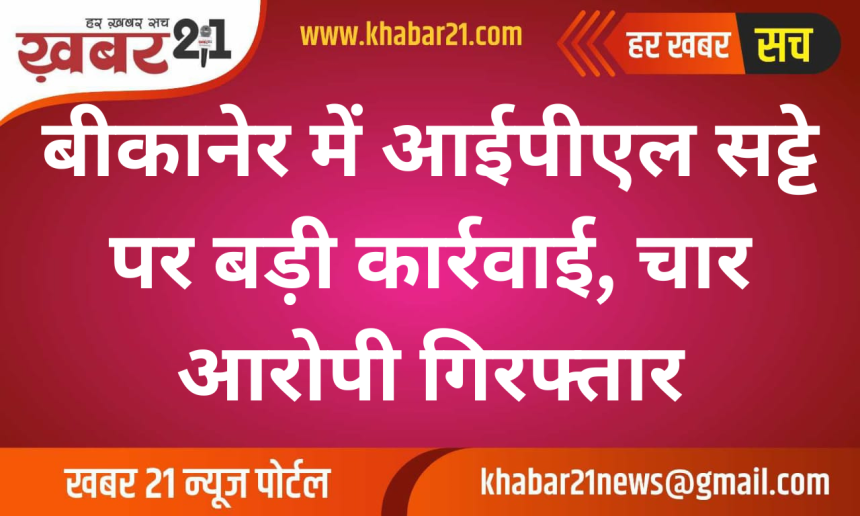 Khabar21 > Blog > बीकानेर > बीकानेर में आईपीएल सट्टे पर बड़ी कार्रवाई, चार आरोपी गिरफ्तार