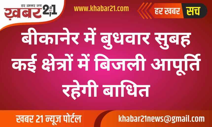 Khabar21 > Blog > बीकानेर > बीकानेर में बुधवार सुबह कई क्षेत्रों में बिजली आपूर्ति रहेगी बाधित