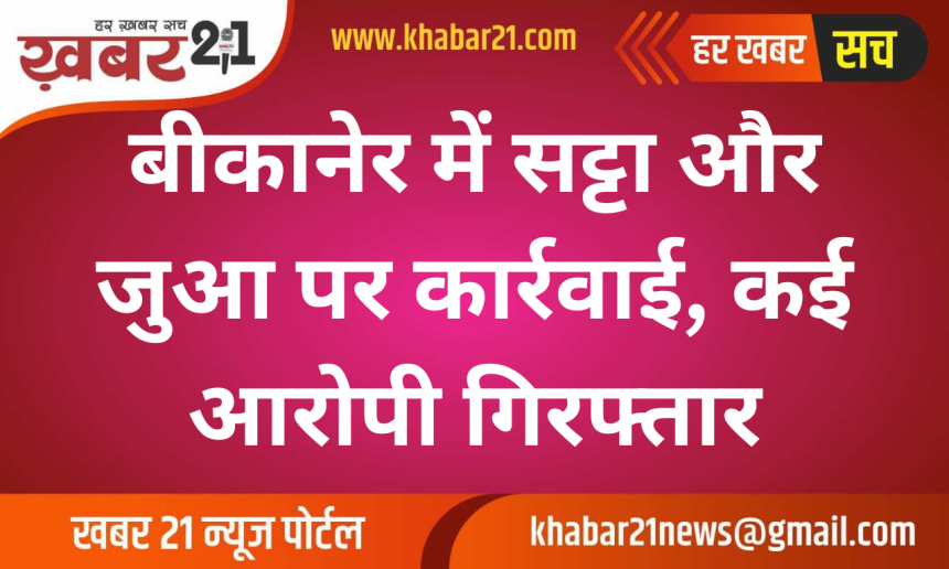 Khabar21 > Blog > बीकानेर > बीकानेर में सट्टा और जुआ पर कार्रवाई, कई आरोपी गिरफ्तार