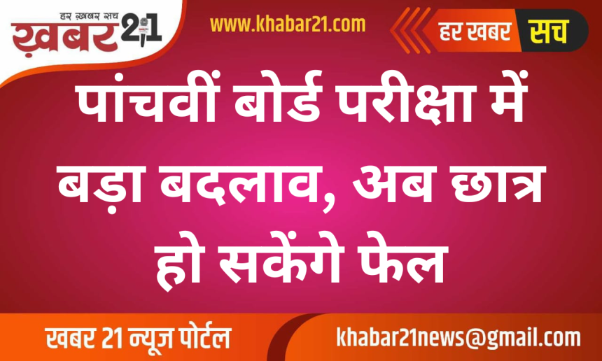 राजस्थान में सरकार ने पांचवीं कक्षा की बोर्ड परीक्षा को लेकर बड़ा बदलाव किया है। अब पांचवीं कक्षा के विद्यार्थियों को भी फेल किया जा सकेगा, जबकि पहले ऐसा प्रावधान नहीं था।