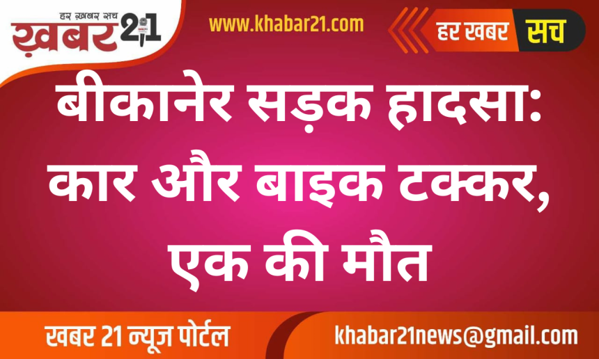 Khabar21 > Blog > बीकानेर > बीकानेर सड़क हादसा: कार और बाइक टक्कर, एक की मौत