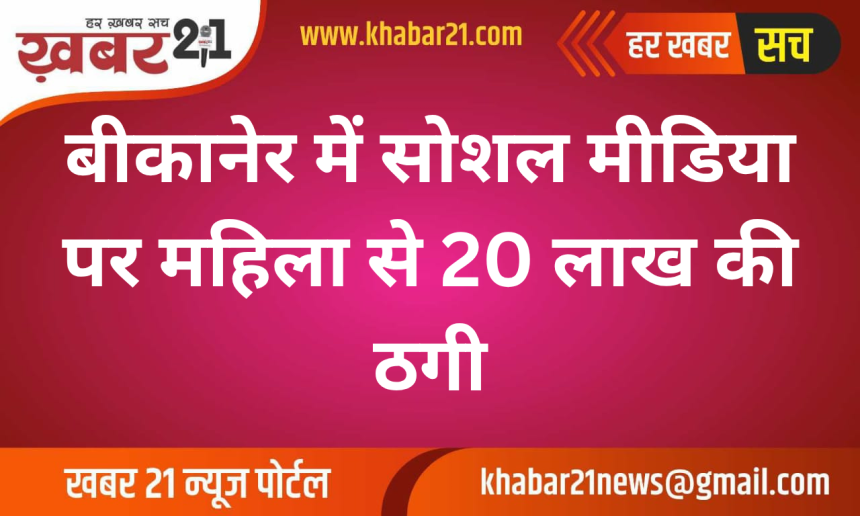 बीकानेर में सोशल मीडिया अब ठगी का नया माध्यम बनता जा रहा है। इसी क्रम में कोचरों का चौक निवासी स्वाति कोचर पत्नी राहुल कोचर के साथ करीब 20 लाख रुपए की ठगी हुई। उन्होंने साईबर पुलिस थाने में अज्ञात लोगों के खिलाफ मामला दर्ज करवाया है।