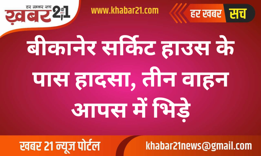 बीकानेर के सर्किट हाउस के पास स्थित व्यस्त मार्ग पर चर्च के सामने एक गंभीर सड़क हादसा हो गया। इस दुर्घटना में दो कारें और एक बाइक आपस में टकरा गईं। हालांकि हादसा काफी भीषण था, लेकिन राहत की बात यह रही कि कोई भी व्यक्ति गंभीर रूप से घायल नहीं हुआ।
