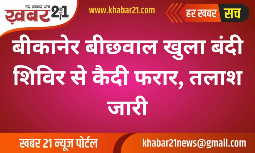 बीकानेर के बीछवाल स्थित खुले बंदी शिविर से एक कैदी के फरार होने की घटना सामने आई है, जिससे जेल प्रशासन और पुलिस महकमे में हड़कंप मच गया है। इस मामले में शिविर प्रभारी गोरधन राम पुरोहित ने बीछवाल थाने में रिपोर्ट दर्ज करवाई है।