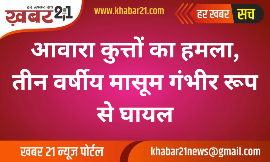 बीकानेर जिले के पांचू क्षेत्र में आवारा कुत्तों के हमले से एक तीन वर्षीय मासूम गंभीर रूप से घायल हो गया। यह घटना उस समय हुई जब बच्चा अपने ननिहाल में ट्यूबवेल के पास खेल रहा था।
