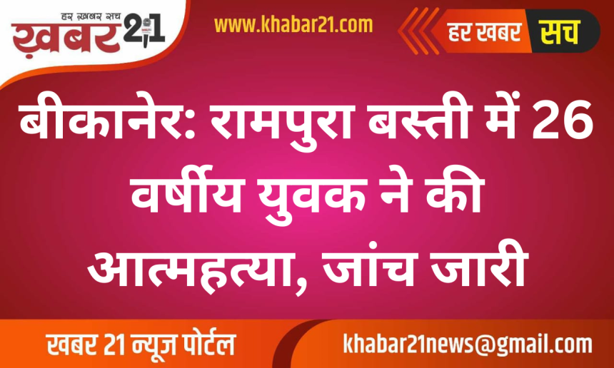 बीकानेर। शहर के लालगढ़ स्थित रामपुरा बस्ती इलाके में बुधवार सुबह एक दुखद घटना सामने आई, जहाँ गली नंबर 18 के निवासी 26 वर्षीय सुरेश कुमार (पुत्र मुकेश) ने अपने घर में फंदा लगाकर जान दे दी।
