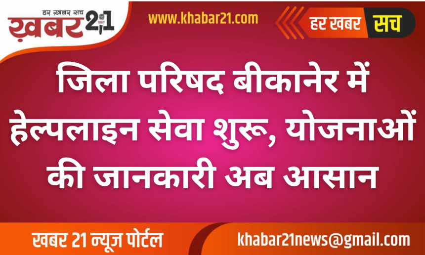 ग्रामीण विकास एवं पंचायती राज विभाग से जुड़ी योजनाओं की जानकारी, प्रस्तावों के निस्तारण और शिकायतों के त्वरित समाधान के लिए बीकानेर जिला परिषद ने एक नई हेल्पलाइन सेवा शुरू की है। इस संबंध में मुख्य कार्यकारी अधिकारी शैलजा पांडे द्वारा आधिकारिक आदेश जारी किया गया है।