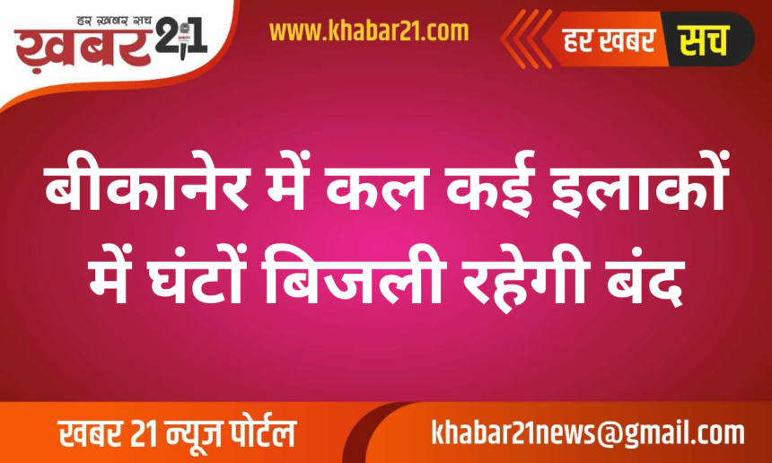 बीछवाल गांव, कृषि विश्वविद्यालय, आरटीओ कार्यालय, बीकानेर जेल, रीको कॉलोनी और 10वीं बटालियन क्षेत्र में बिजली गुल रहेगी।