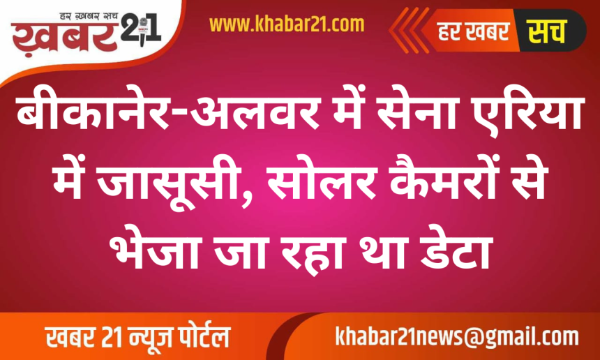 बीकानेर सहित राजस्थान के कई इलाकों में सेना और छावनी क्षेत्रों की जासूसी का बड़ा मामला सामने आया है। जानकारी के अनुसार, आर्मी एरिया के आसपास सोलर सीसीटीवी कैमरे लगाए गए थे, जिनके जरिए संवेदनशील गतिविधियों की निगरानी की जा रही थी।
