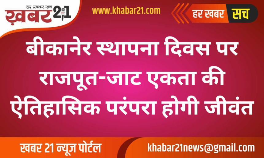 बीकानेर स्थापना दिवस (आखा बीज) के पावन अवसर पर इस वर्ष शहर में सदियों पुरानी सामाजिक समरसता और भाईचारे की परंपरा एक बार फिर जीवंत होने जा रही है। इस खास मौके पर राजपूत और जाट समाज एक ही जाजम पर बैठकर अपनी साझा विरासत का सम्मान करेंगे।