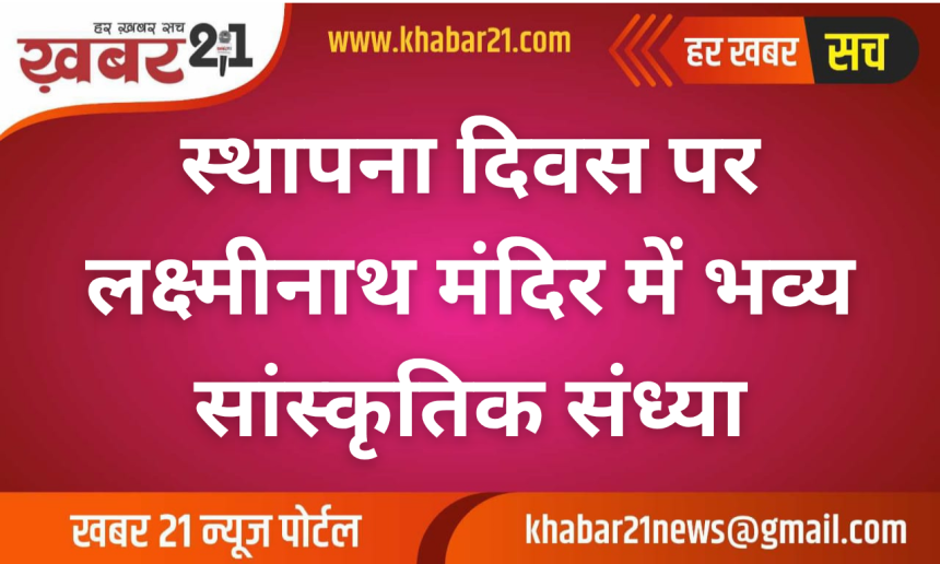 बीकानेर स्थापना दिवस के अवसर पर शनिवार को शहर में भक्ति और सांस्कृतिक रंगों से सजी एक भव्य संध्या का आयोजन किया गया। जिला प्रशासन, नगर विकास न्यास बीकानेर, बीकानेर विकास प्राधिकरण और श्री लक्ष्मीनाथ मंदिर विकास एवं पर्यावरण समिति के संयुक्त तत्वावधान में यह कार्यक्रम श्री लक्ष्मीनाथ मंदिर परिसर में आयोजित हुआ।