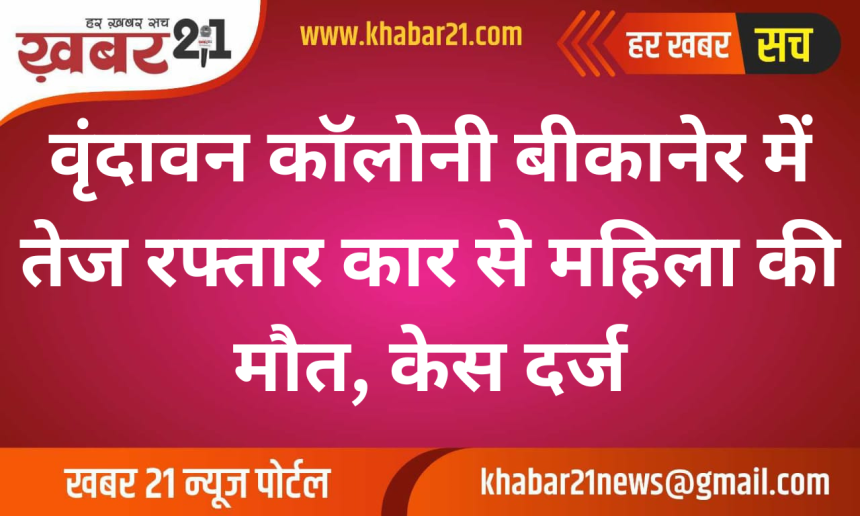 बीकानेर। जेएनवीसी थाना क्षेत्र में एक सड़क हादसे में महिला की दर्दनाक मौत हो गई। इस मामले में पुलिस ने कार चालक के खिलाफ मुकदमा दर्ज कर जांच शुरू कर दी है।