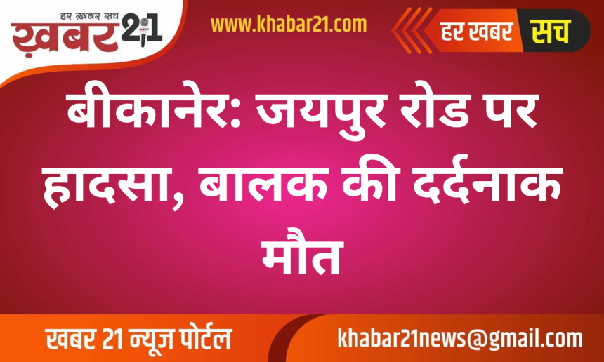 बीकानेर में सड़क हादसे में एक बालक की मौत का मामला सामने आया है। घटना जेएनवीसी थाना क्षेत्र में एलआईसी के पास जयपुर रोड पर 20 अप्रैल दोपहर की बताई जा रही है।
