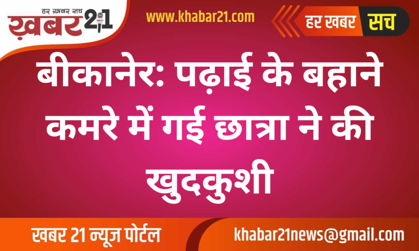बीकानेर। शहर के जेएनवीसी थाना इलाके के वल्लभ गार्डन में एक 18 वर्षीय छात्रा द्वारा आत्मघाती कदम उठाने का झकझोर देने वाला मामला सामने आया है। मृतका की पहचान जिया सिंह के रूप में हुई है, जिसने कोचिंग से लौटने के बाद अपने कमरे में फांसी लगाकर जान दे दी।