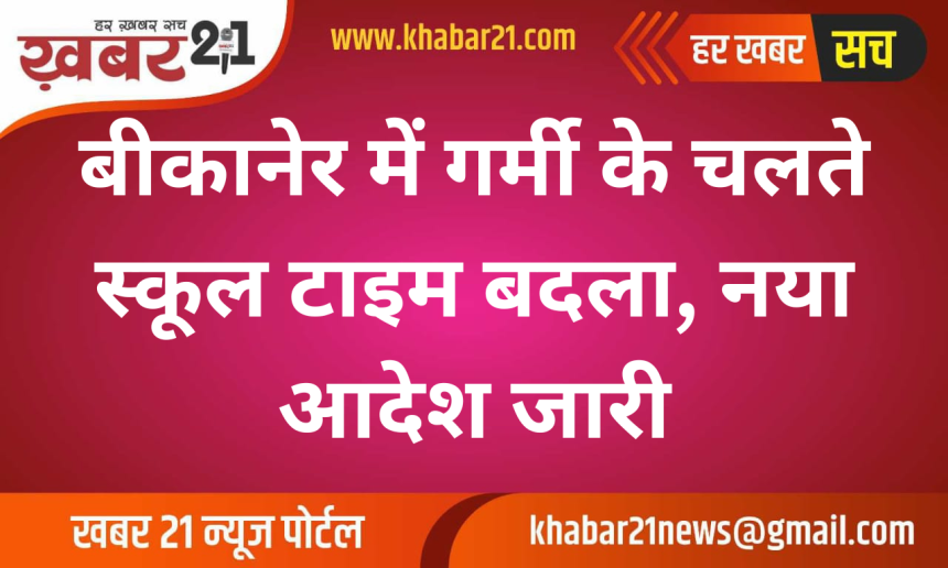 बीकानेर में बढ़ती गर्मी और हीटवेव को देखते हुए जिला प्रशासन ने स्कूल समय में बदलाव किया है। जिला कलेक्टर निशांत जैन ने भारतीय मौसम विभाग के पूर्वानुमान और शिक्षा विभाग के प्रस्ताव के आधार पर यह आदेश जारी किया।