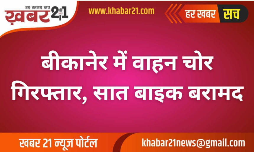 बीकानेर शहर में बढ़ती वाहन चोरी की घटनाओं के बीच कोटगेट थाना पुलिस को एक अहम सफलता हाथ लगी है। लगातार मिल रही शिकायतों और बढ़ती वारदातों को देखते हुए पुलिस ने विशेष अभियान चलाया, जिसके तहत एक शातिर चोर को गिरफ्तार किया गया। आरोपी के कब्जे से चोरी की सात मोटरसाइकिलें बरामद की गई हैं, जिससे कई मामलों का खुलासा होने की उम्मीद है।