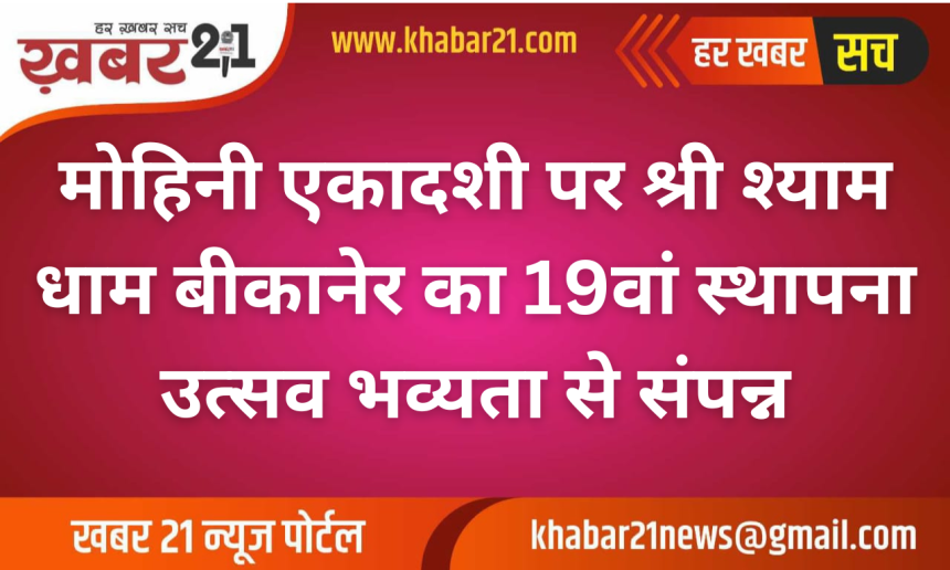 बीकानेर में इस वर्ष मोहिनी एकादशी का पर्व आस्था और उल्लास के विशेष संगम के रूप में मनाया गया। सोमवार, 27 अप्रैल का दिन शहर के प्रसिद्ध श्री श्याम धाम के लिए दोहरी खुशियां लेकर आया, जहां एक ओर भगवान विष्णु के मोहिनी अवतार की विधिवत पूजा-अर्चना हुई, वहीं मंदिर का 19वां स्थापना दिवस भी श्रद्धा के साथ मनाया गया।