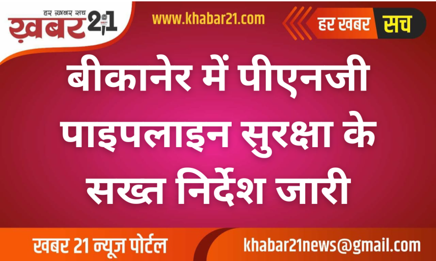 बीकानेर शहर में पाइप्ड नेचुरल गैस (PNG) नेटवर्क की सुरक्षा को लेकर जिला प्रशासन ने सख्त रुख अपनाया है। समता नगर और करणी नगर क्षेत्रों में बिछाई गई गैस पाइपलाइन को सुरक्षित बनाए रखने के लिए जिला कलेक्टर कार्यालय की ओर से सभी संबंधित विभागों को स्पष्ट निर्देश जारी किए गए हैं।