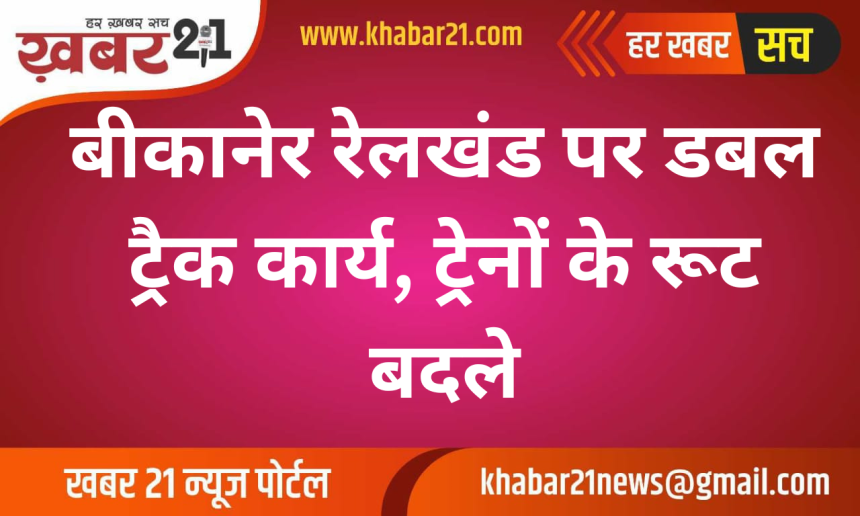 बीकानेर मंडल के चूरू–सादुलपुर रेलखंड पर डबल ट्रैक निर्माण कार्य के चलते रेलवे ने ऑटोमेटिक सिग्नलिंग ब्लॉक लिया है, जिससे 27 और 28 अप्रैल को रेल यातायात प्रभावित रहेगा। इस दौरान कई ट्रेनों को वैकल्पिक मार्ग से चलाया जाएगा और कुछ ट्रेनों का संचालन North Western Railway के जोधपुर मंडल के रास्ते किया जाएगा, जहां वे मेड़ता बाइपास मार्ग का उपयोग करेंगी।