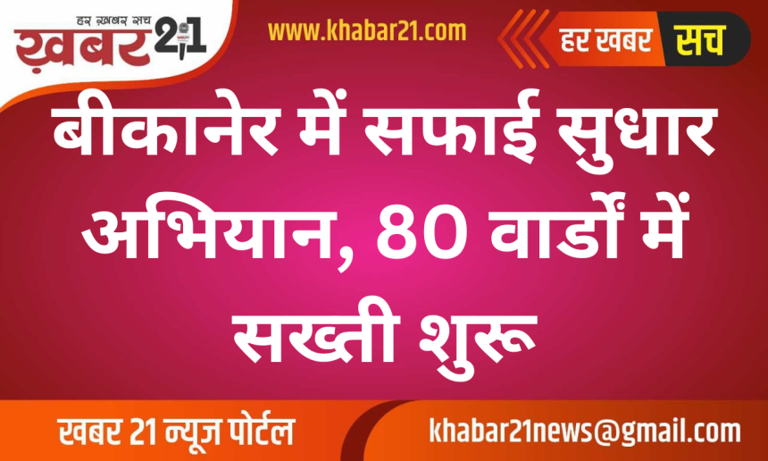 बीकानेर शहर की बिगड़ी सफाई व्यवस्था को सुधारने के लिए नगर निगम ने नई कार्ययोजना लागू करने का फैसला किया है। इसके तहत शहर के सभी 80 वार्डों में कचरा संग्रहण की सख्त निगरानी की जाएगी और लापरवाही करने वाले अधिकारियों व कर्मचारियों पर कार्रवाई होगी। अगले 10 दिनों में प्रमुख स्थानों की पहचान कर विशेष सफाई अभियान भी चलाया जाएगा।