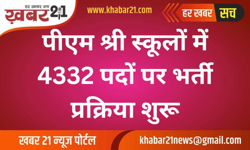 बीकानेर सहित पूरे राज्य में पीएम श्री स्कूलों में रिक्त पदों को भरने की प्रक्रिया शुरू होने जा रही है। माध्यमिक शिक्षा निदेशालय ने 4332 पदों के लिए शिक्षा विभाग में कार्यरत शिक्षकों से 29 से 30 अप्रैल तक ऑनलाइन आवेदन मांगे हैं। इन पदों में प्राचार्य से लेकर प्रयोगशाला सहायक तक विभिन्न श्रेणियां शामिल हैं।