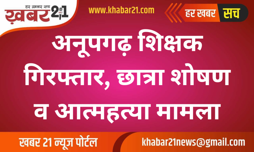 अनूपगढ़ में एक सरकारी उच्च माध्यमिक विद्यालय के हिंदी व्याख्याता रमनदीप सिंह को नाबालिग छात्रा से छेड़छाड़ और शोषण के आरोप में गिरफ्तार किया गया है। पुलिस ने आरोपी को पॉक्सो एक्ट के तहत कार्रवाई करते हुए कोर्ट में पेश किया, जहां से उसे न्यायिक हिरासत में भेज दिया गया।