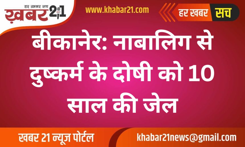 बीकानेर के नयाशहर थाना क्षेत्र में एक नाबालिग छात्रा के अपहरण और दुष्कर्म के मामले में न्यायालय ने ऐतिहासिक फैसला सुनाया है। न्यायाधीश अनु अग्रवाल ने आरोपी गणेश को दोषी करार देते हुए 10 वर्ष के कठोर कारावास की सजा दी है। साथ ही, दोषी पर 1.75 लाख रुपये का जुर्माना भी लगाया गया है, जो सहायता राशि के रूप में पीड़िता को दिया जाएगा।