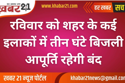 रविवार को शहर के कई इलाकों में तीन घंटे बिजली आपूर्ति रहेगी बंद