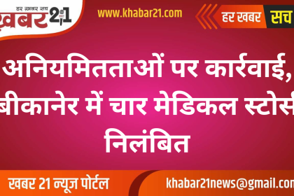 अनियमितताओं पर कार्रवाई, बीकानेर में चार मेडिकल स्टोर्स निलंबित
