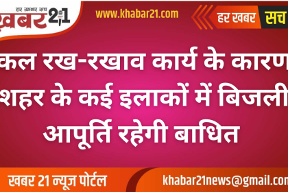 कल रख-रखाव कार्य के कारण शहर के कई इलाकों में बिजली आपूर्ति रहेगी बाधित