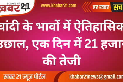 चांदी के भावों में ऐतिहासिक उछाल, एक दिन में 21 हजार की तेजी