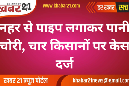 नहर से पाइप लगाकर पानी चोरी, चार किसानों पर केस दर्ज
