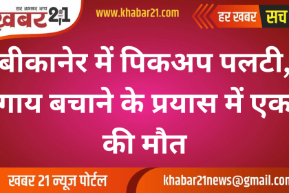 बीकानेर में पिकअप पलटी, गाय बचाने के प्रयास में एक की मौत