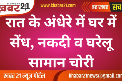 रात के अंधेरे में घर में सेंध, नकदी व घरेलू सामान चोरी