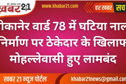 बीकानेर वार्ड 78 में घटिया नाली निर्माण पर ठेकेदार के खिलाफ मोहल्लेवासी हुए लामबंद