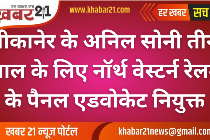 बीकानेर निवासी अनिल सोनी बने नॉर्थ वेस्टर्न रेलवे के पैनल एडवोकेट, तीन…