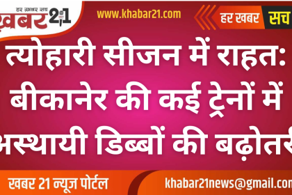 त्योहारी सीजन में राहत: बीकानेर की कई ट्रेनों में अस्थायी डिब्बों की…
