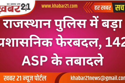 राजस्थान पुलिस में बड़ा प्रशासनिक फेरबदल, 142 ASP के तबादले