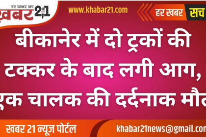 बीकानेर में दो ट्रकों की टक्कर के बाद लगी आग, एक चालक की दर्दनाक मौत