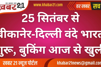 बीकानेर से दिल्ली के लिए वंदे भारत 25 सितंबर से चलेगी —…