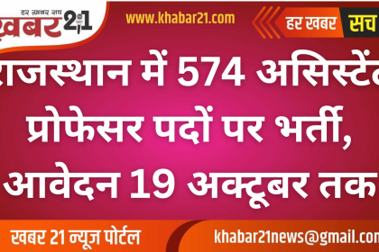 राजस्थान में 574 असिस्टेंट प्रोफेसर पदों पर भर्ती, आवेदन 19 अक्टूबर तक