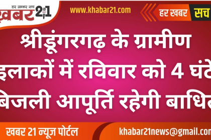 श्रीडूंगरगढ़ के ग्रामीण इलाकों में रविवार को 4 घंटे बिजली आपूर्ति रहेगी बाधित